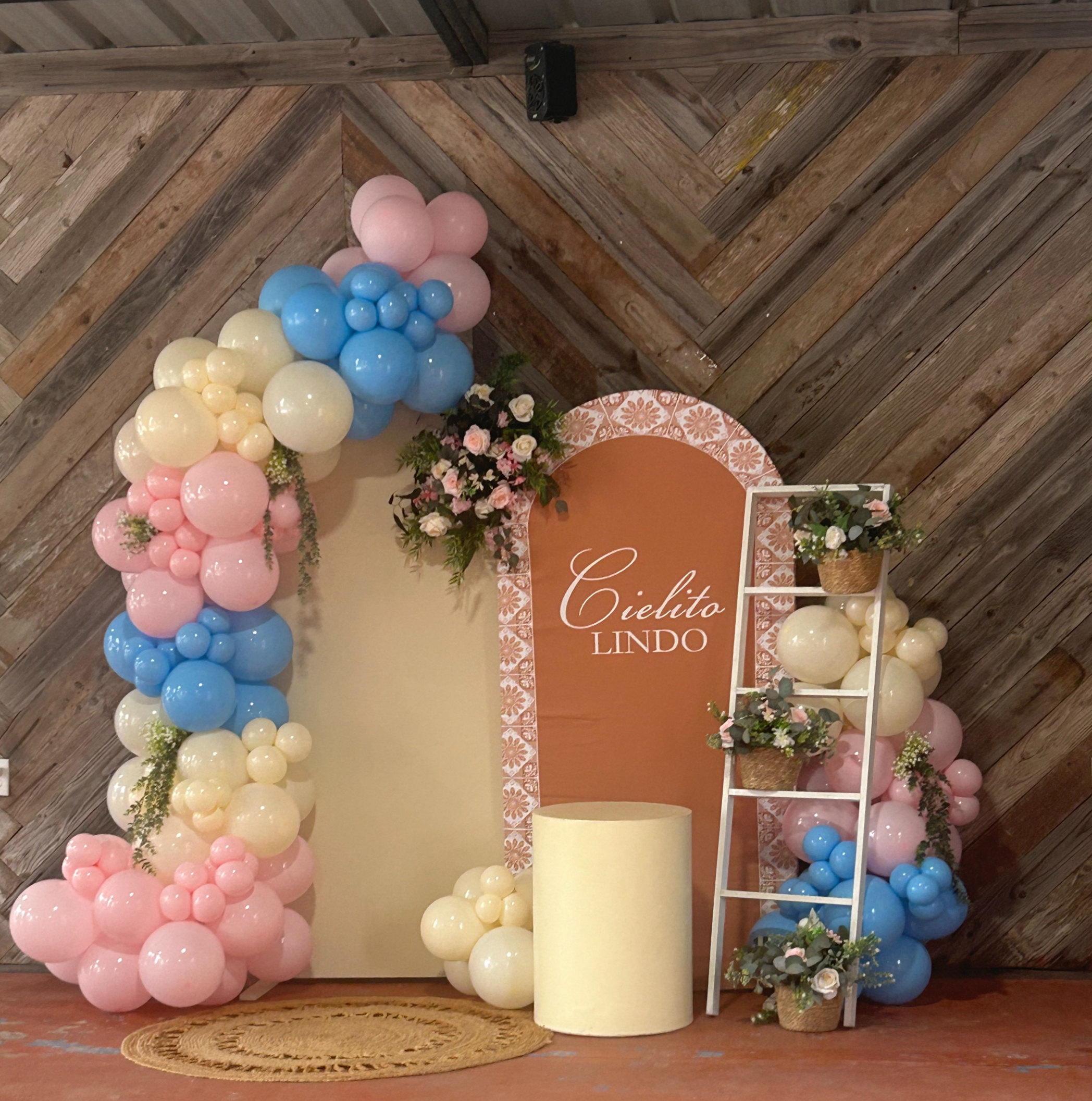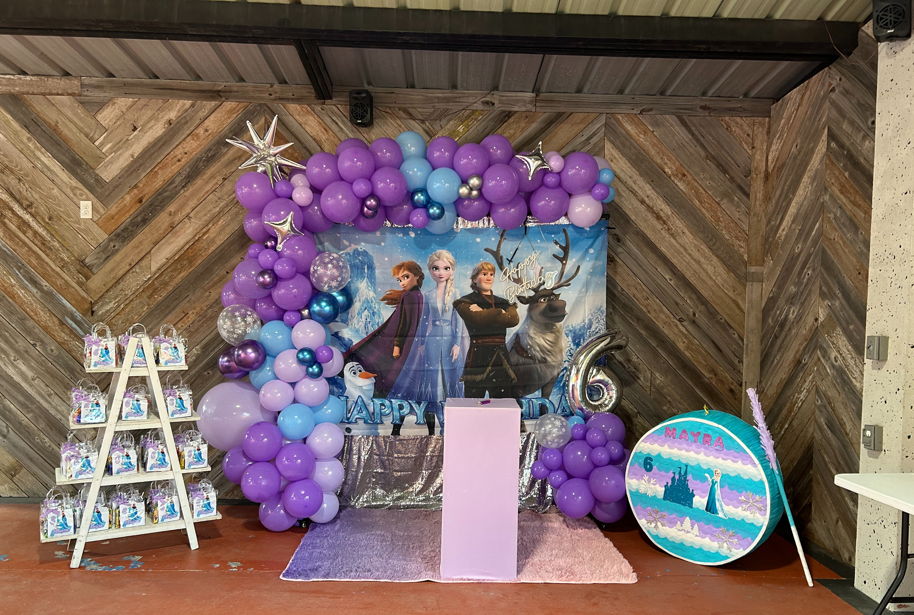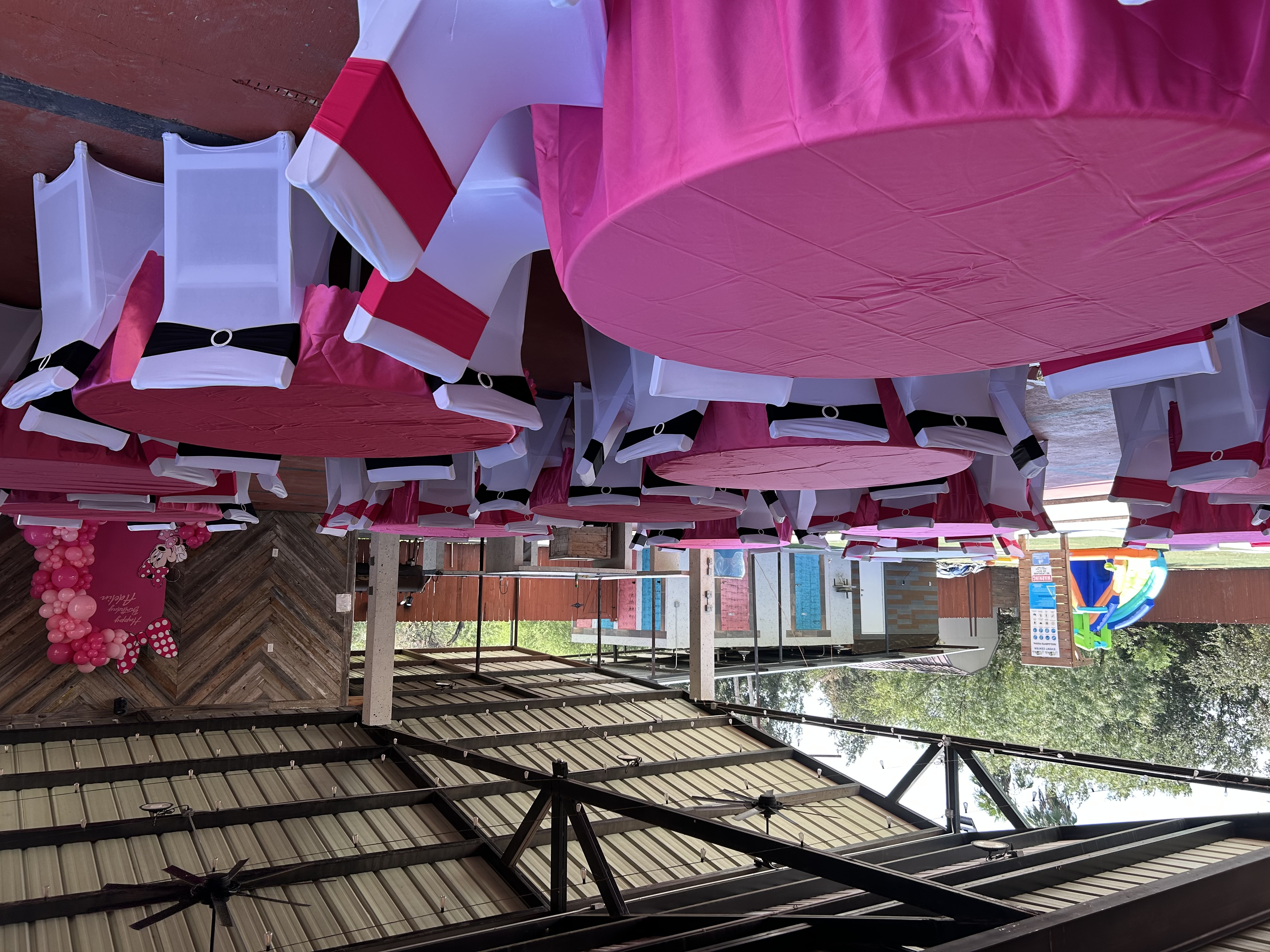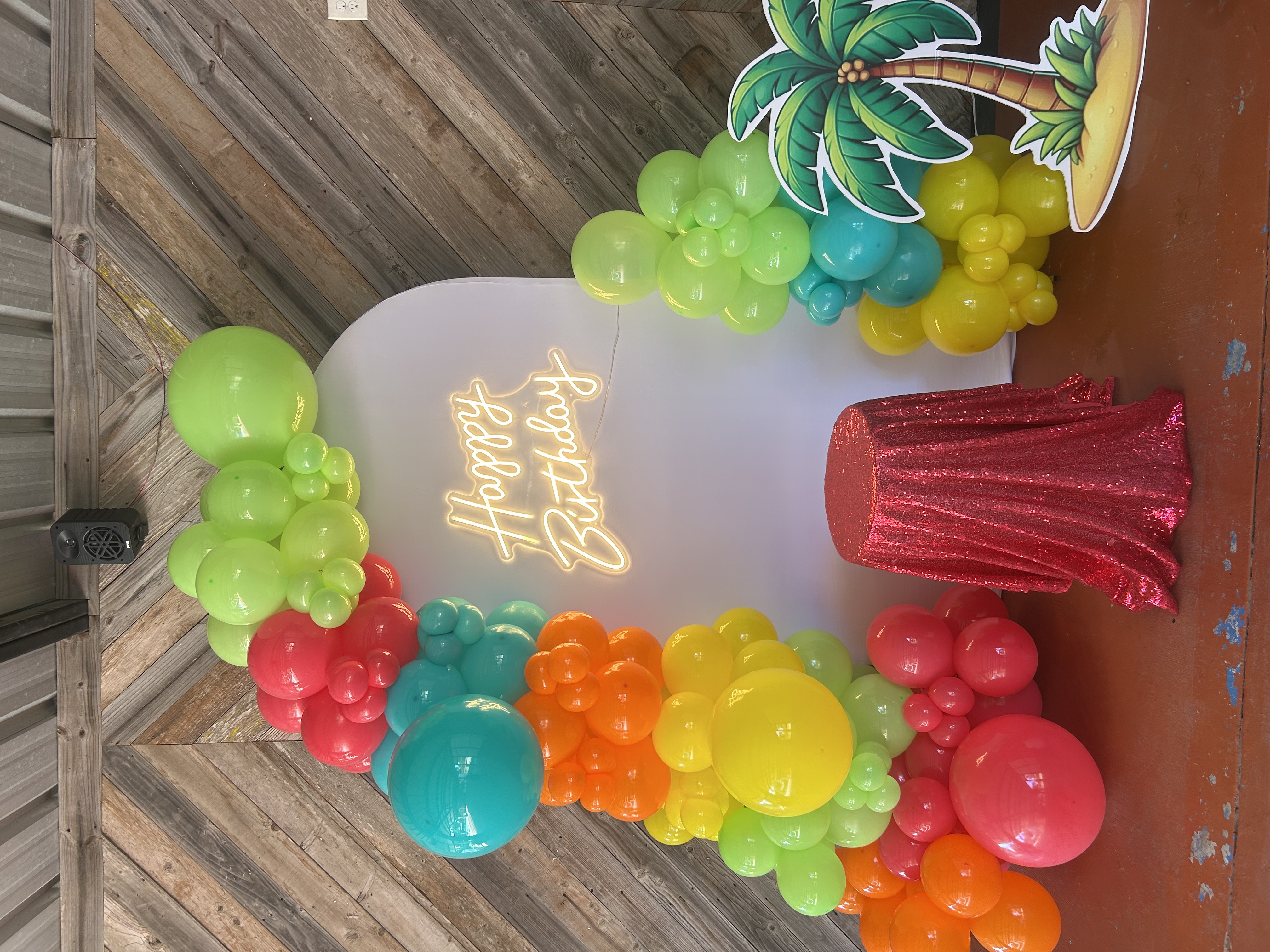 A backdrop decoration is when an event venue designs and sets up a custom background that becomes the main focal point of your celebration—usually placed behind the cake table, head table, or photo area.