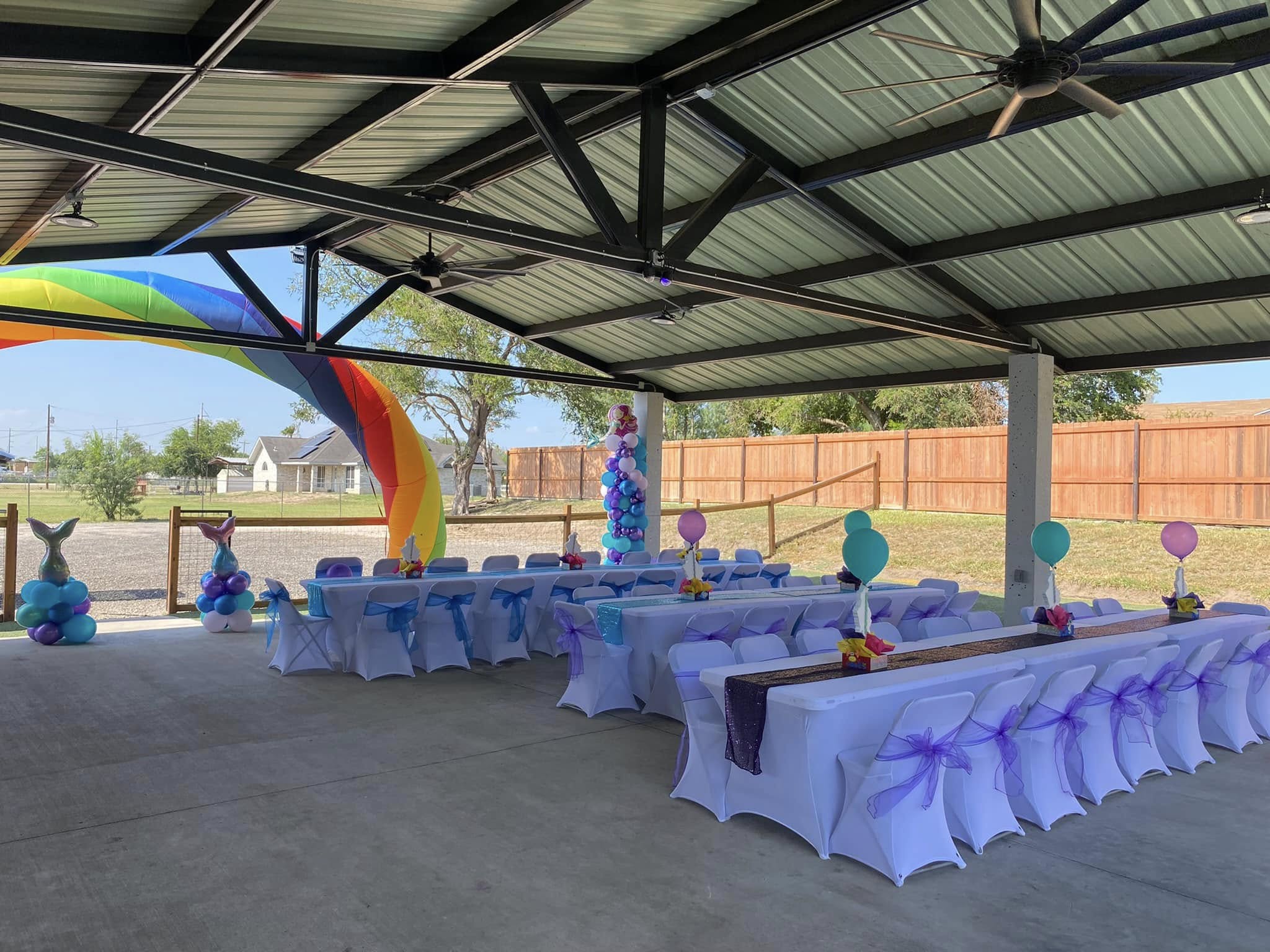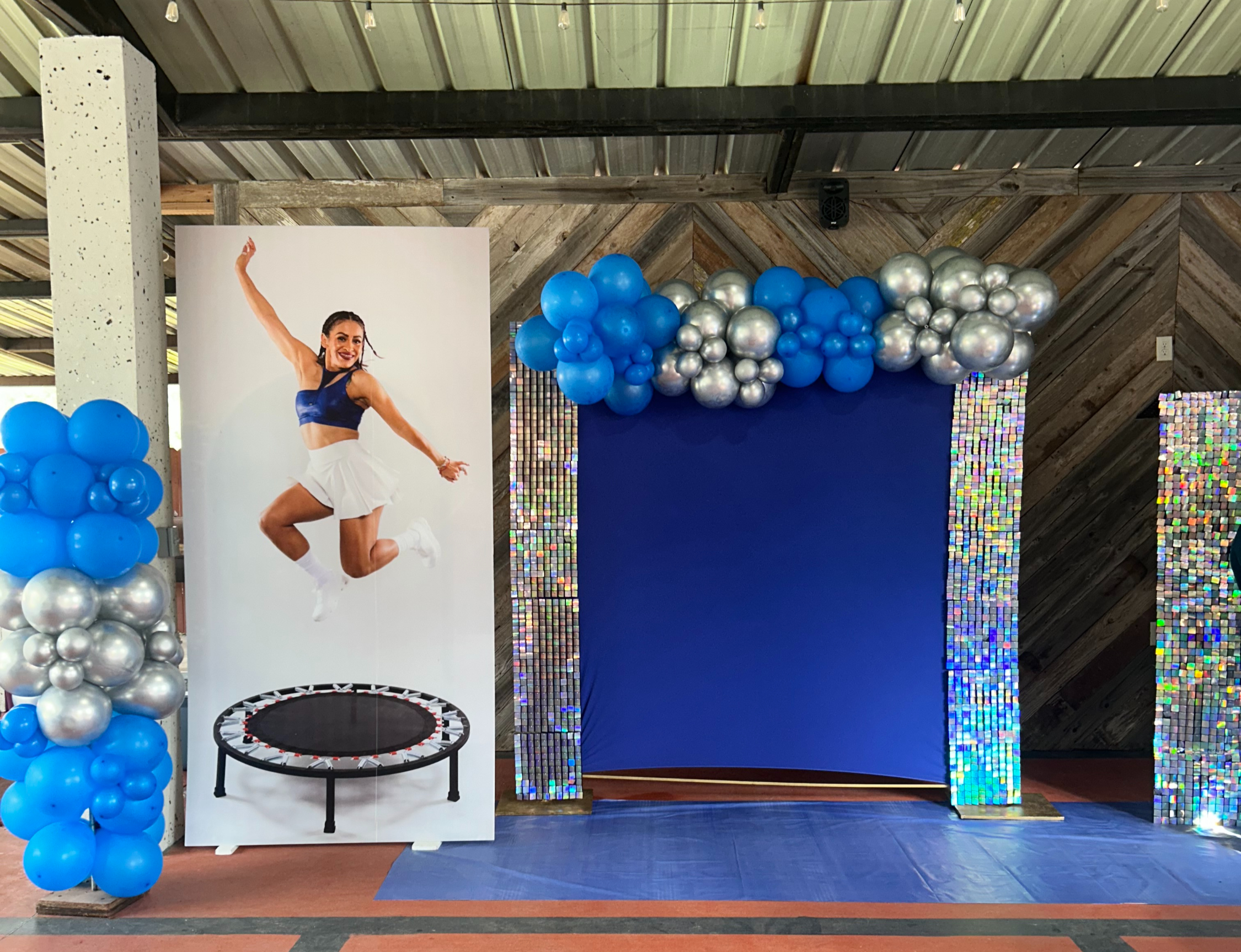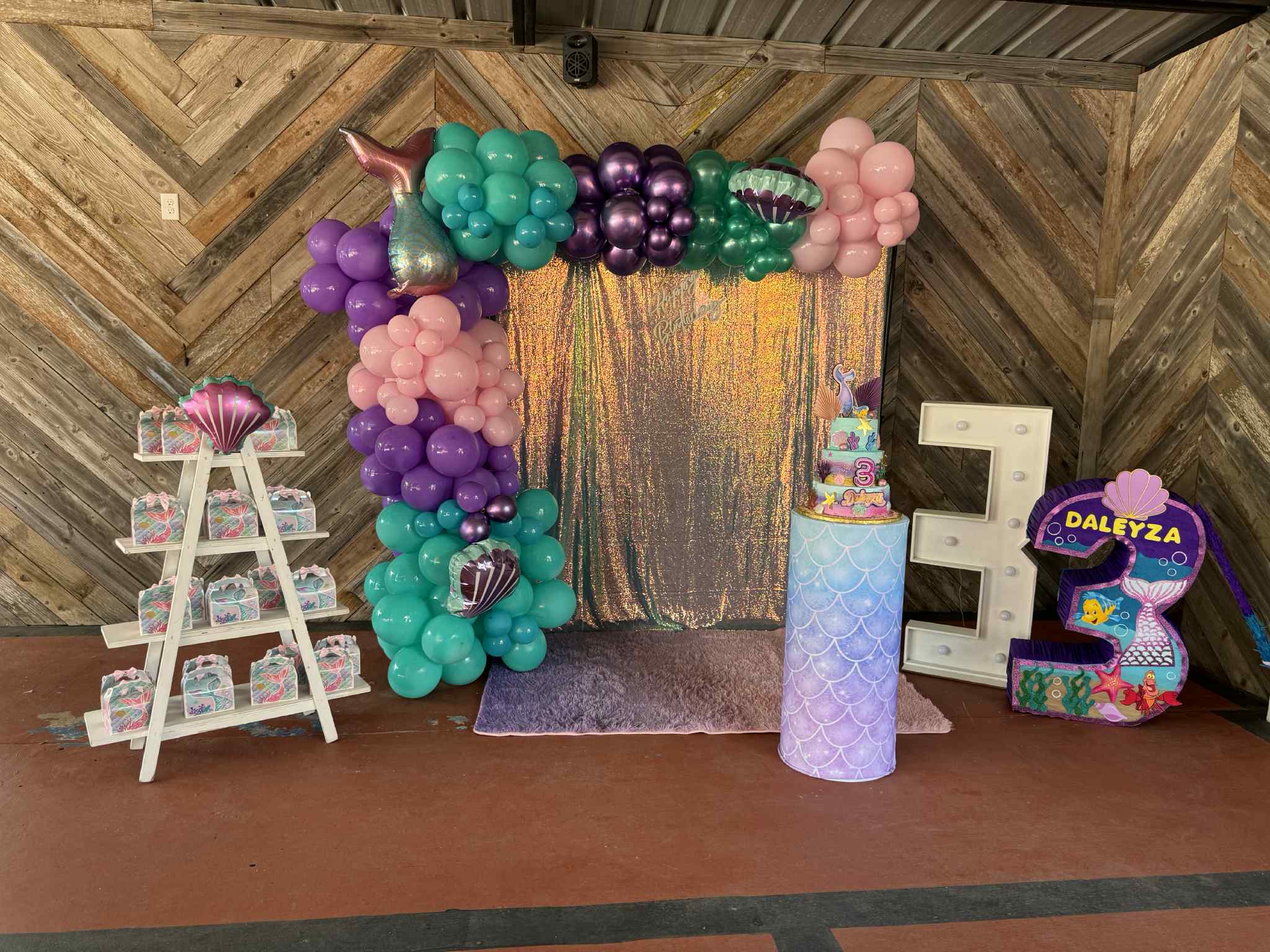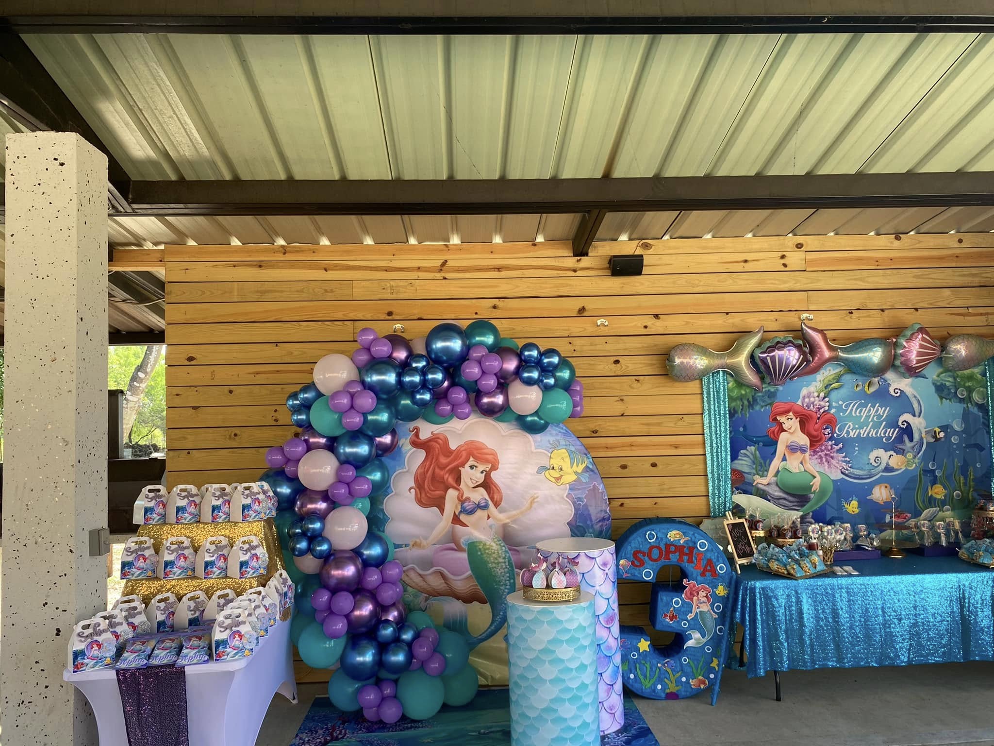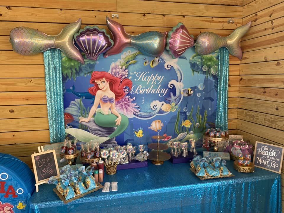 A backdrop decoration is when an event venue designs and sets up a custom background that becomes the main focal point of your celebration—usually placed behind the cake table, head table, or photo area.