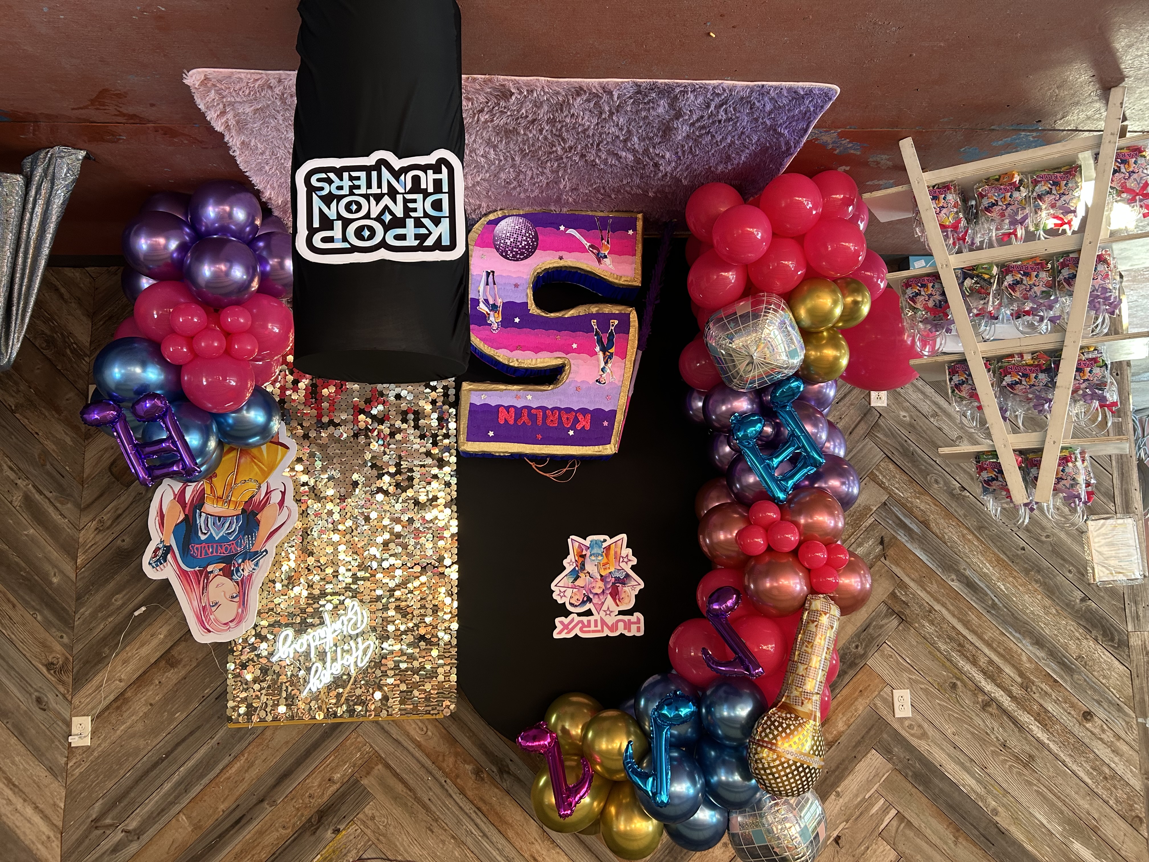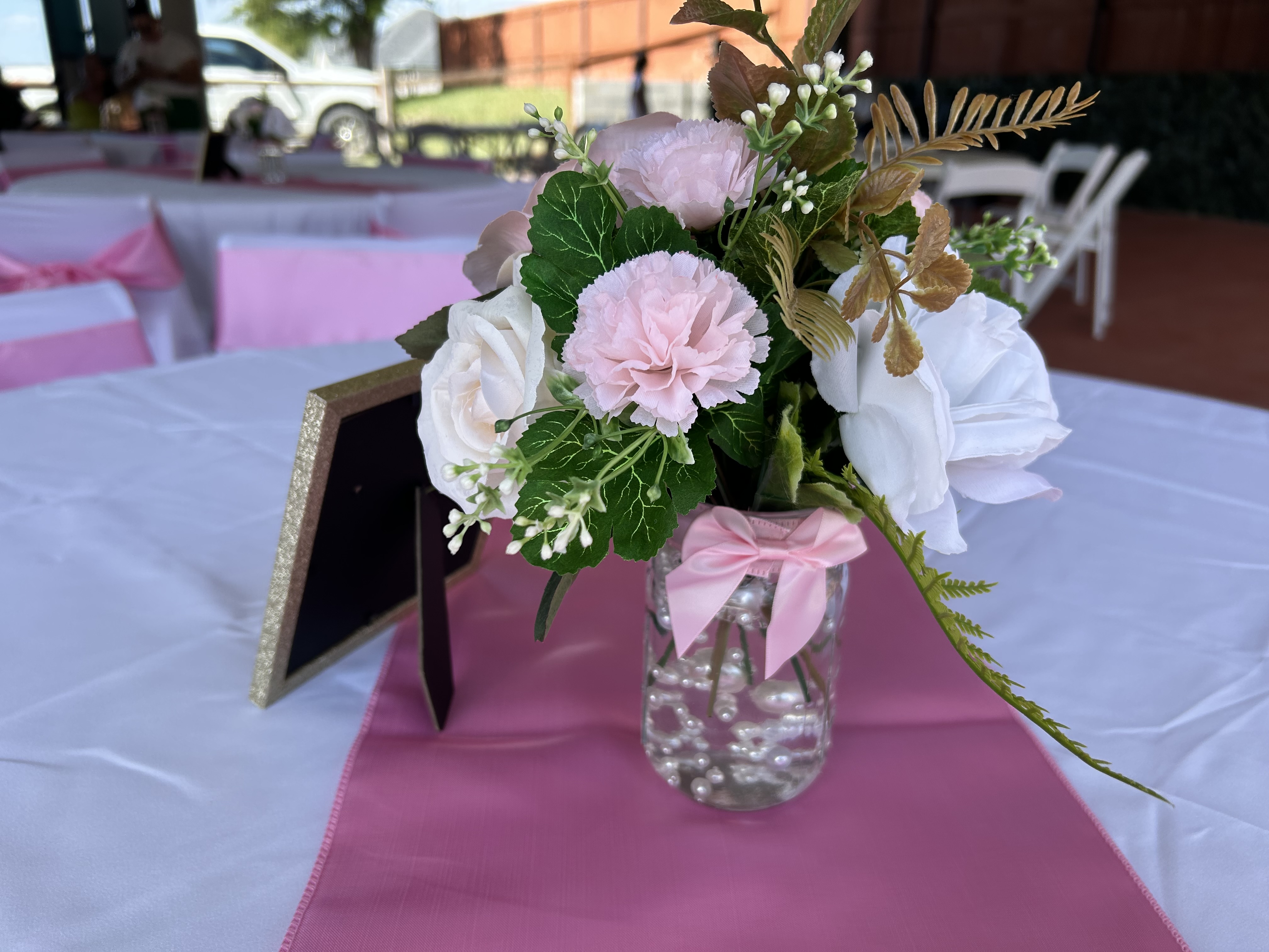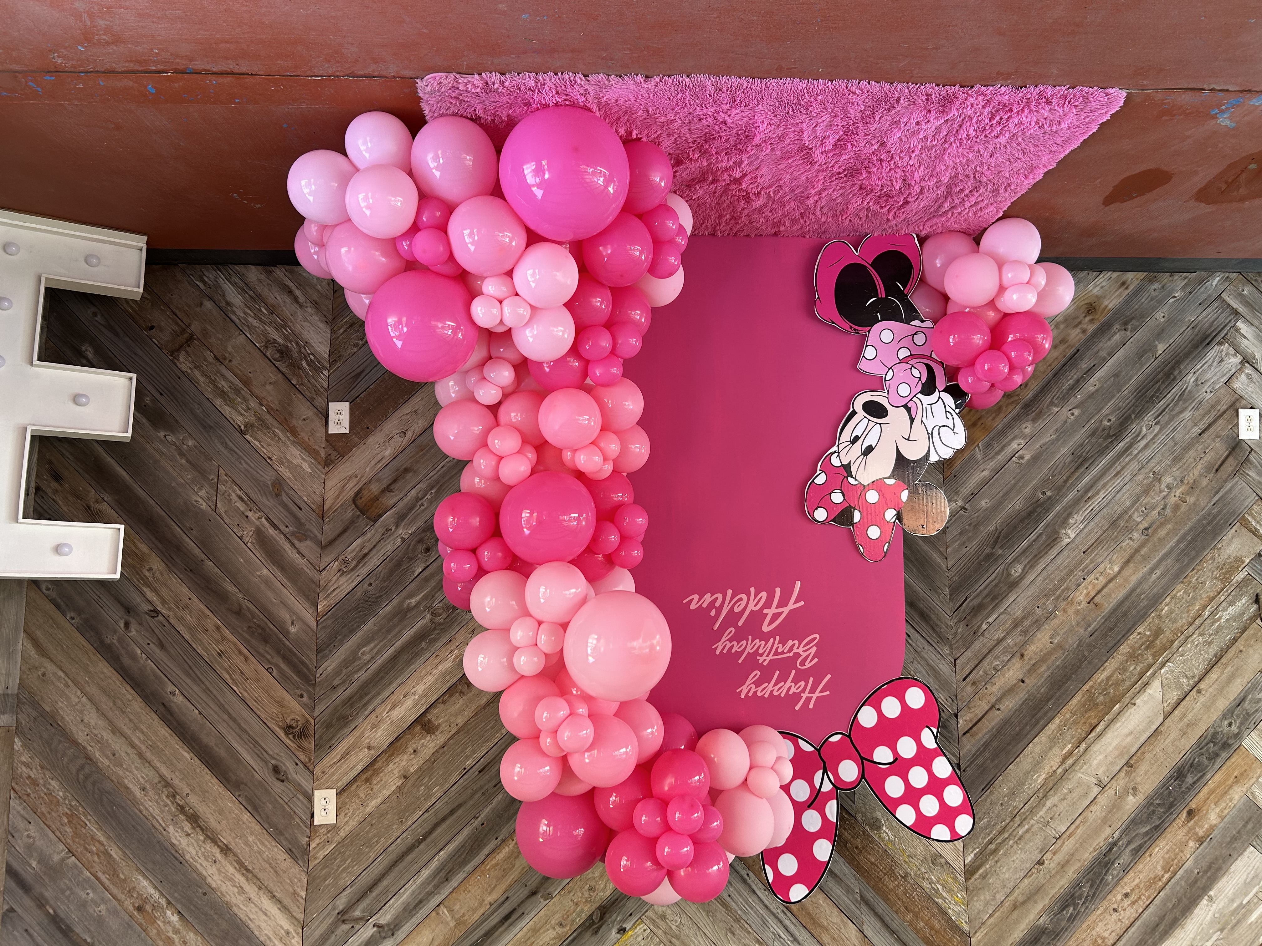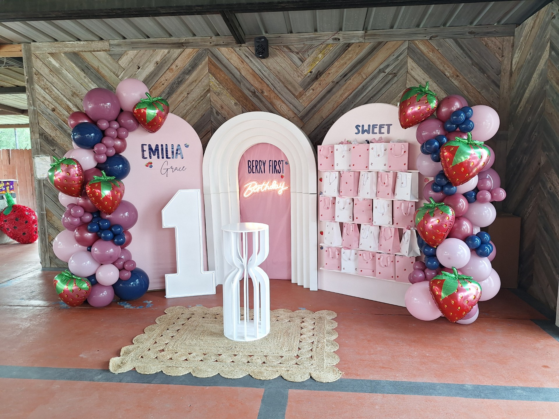 A backdrop decoration is when an event venue designs and sets up a custom background that becomes the main focal point of your celebration—usually placed behind the cake table, head table, or photo area.