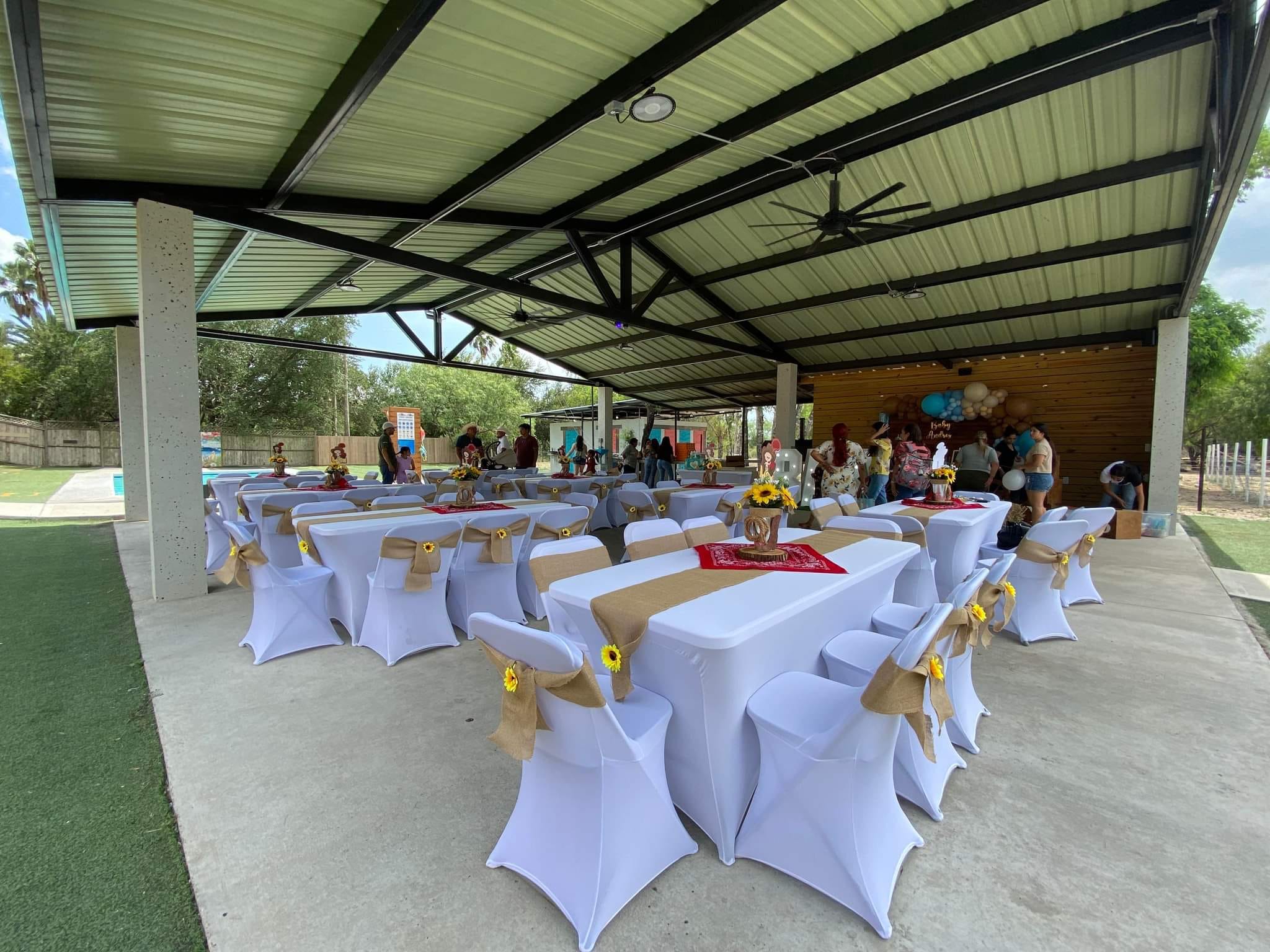 A table and chairs linen service provides tablecloths and chair covers to match your event’s theme, creating a clean, stylish, and coordinated setup.